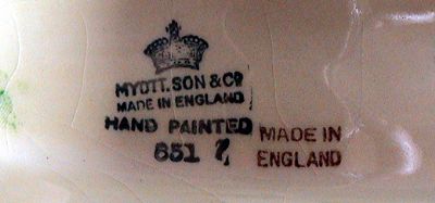 Marks: Gold MYOTT crown, HAND PAINTED, MADE IN ENGLAND.